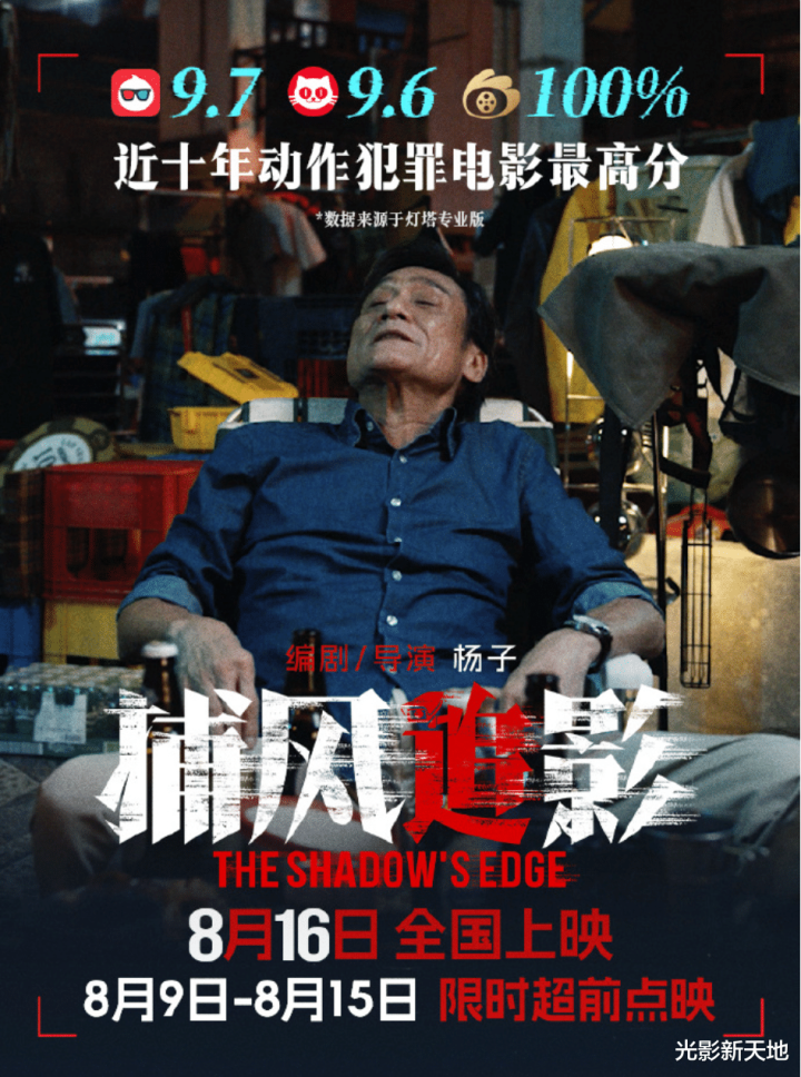 《捕风追影》开启点映后,淘票票、猫眼两大平台开出了9.7/9.6的高分,这是近十年动作犯罪电影最高分,超过了《怒火·重案》的9.3/9.1和《九龙城寨之围城》的双平台9.3。