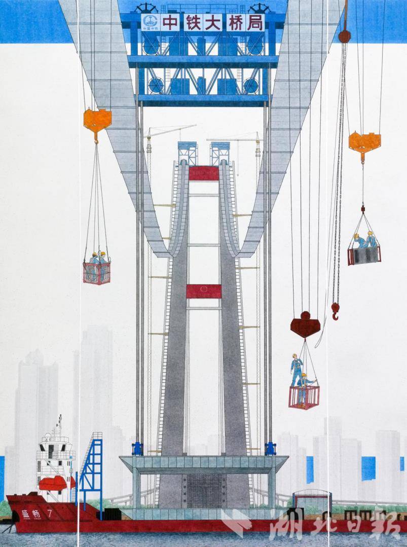 万国龙《武汉长江大桥·筑梦杨泗港》国画 2021年 湖北美术馆藏