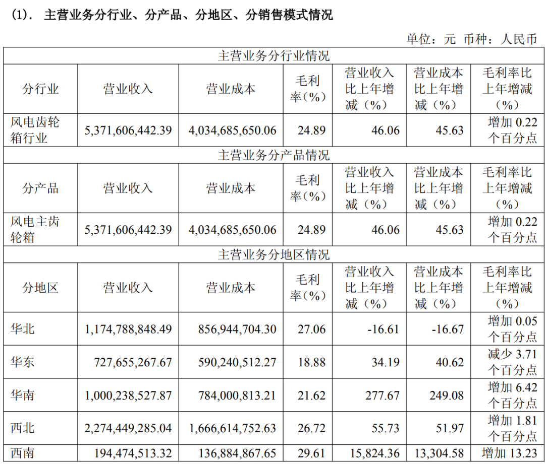 2025年,公司持续深化海外市场布局,积极与海外知名风电整机厂商开展业务交流与商务合作,稳步推进相关产品研发工作,并持续加大对国际主流风电整机客户的市场开拓力度。公司大功率海上及陆上风电机组齿轮箱产品已实现规模化交付,经营规模与盈利水平同步提升。